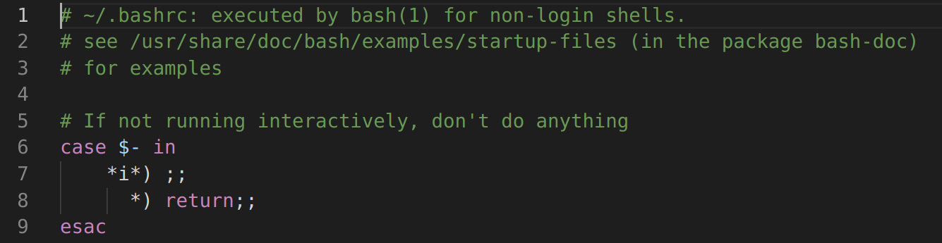 Figure 2 Lines to be commented in .bashrc file. (Line 6 to 9.) ↑